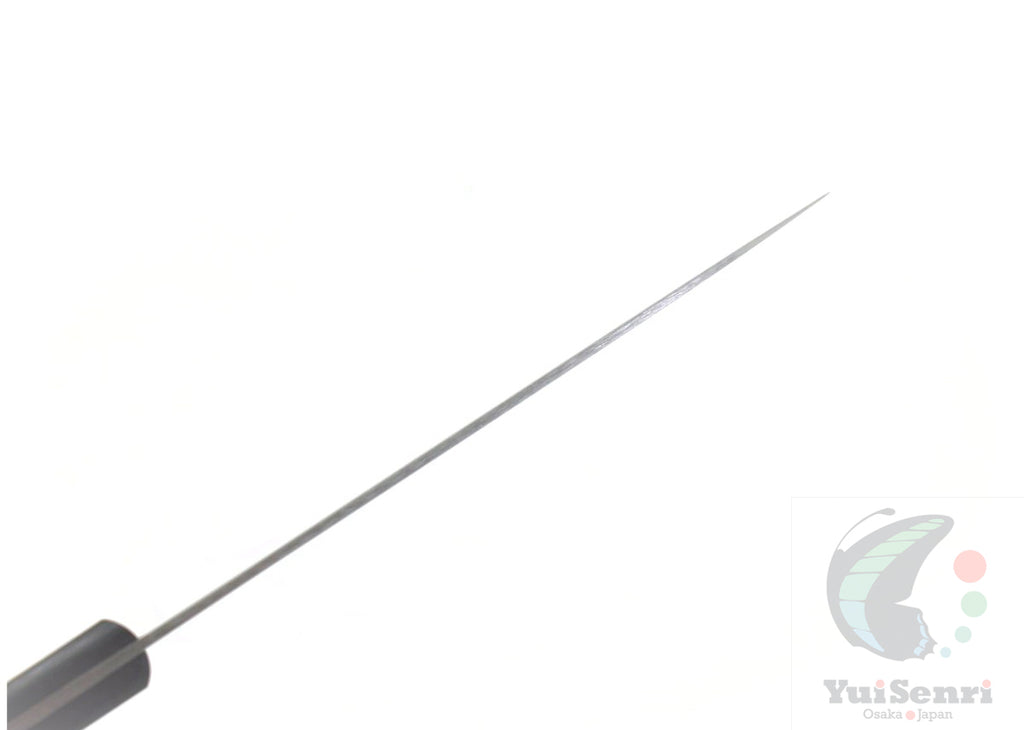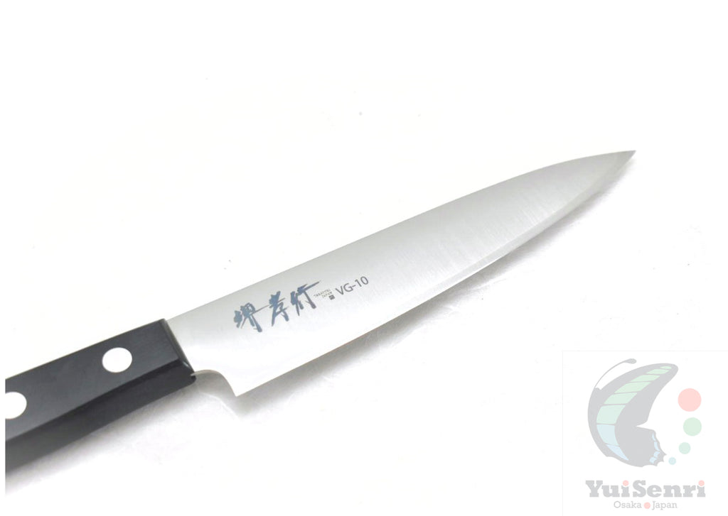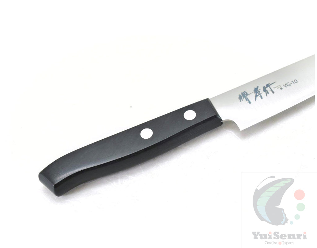 This is a Sakai Takayuki SUMIRE Household model, made of VG-10 Stain Resistant Steel at the core of the blade, squeezed into Stainless Steel.