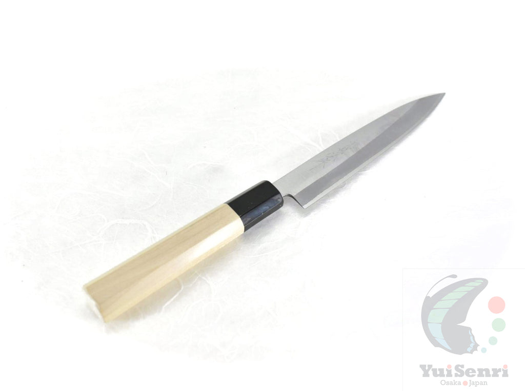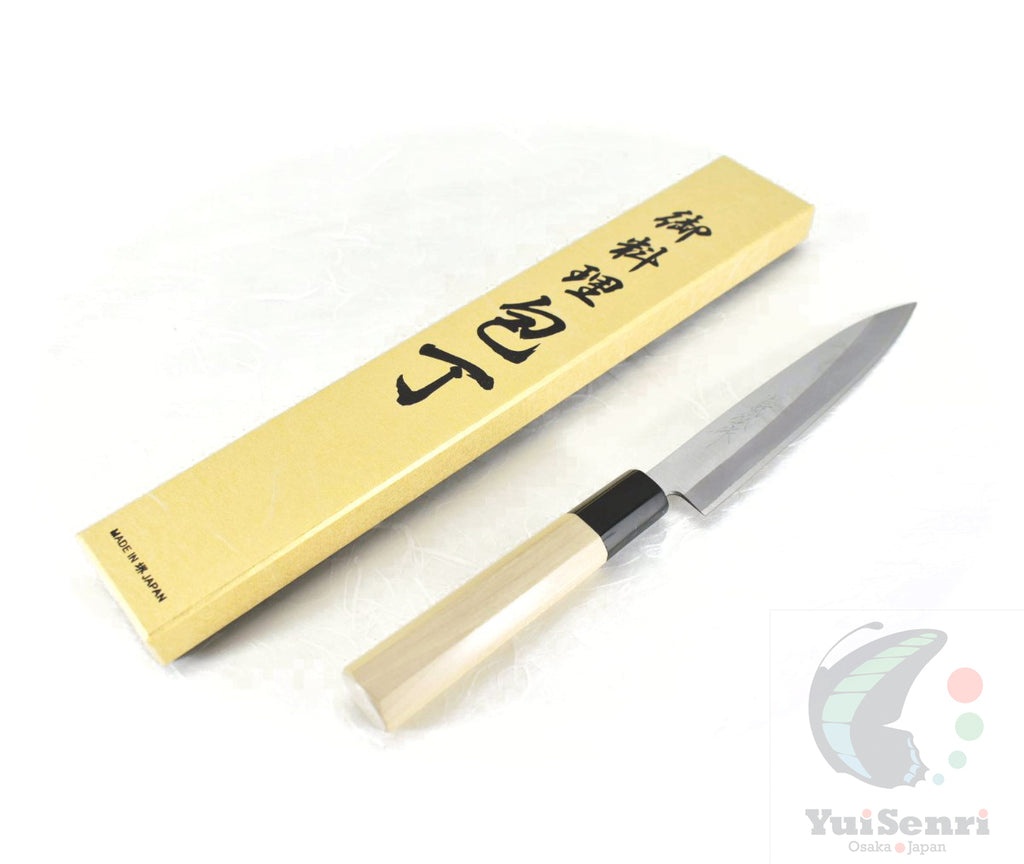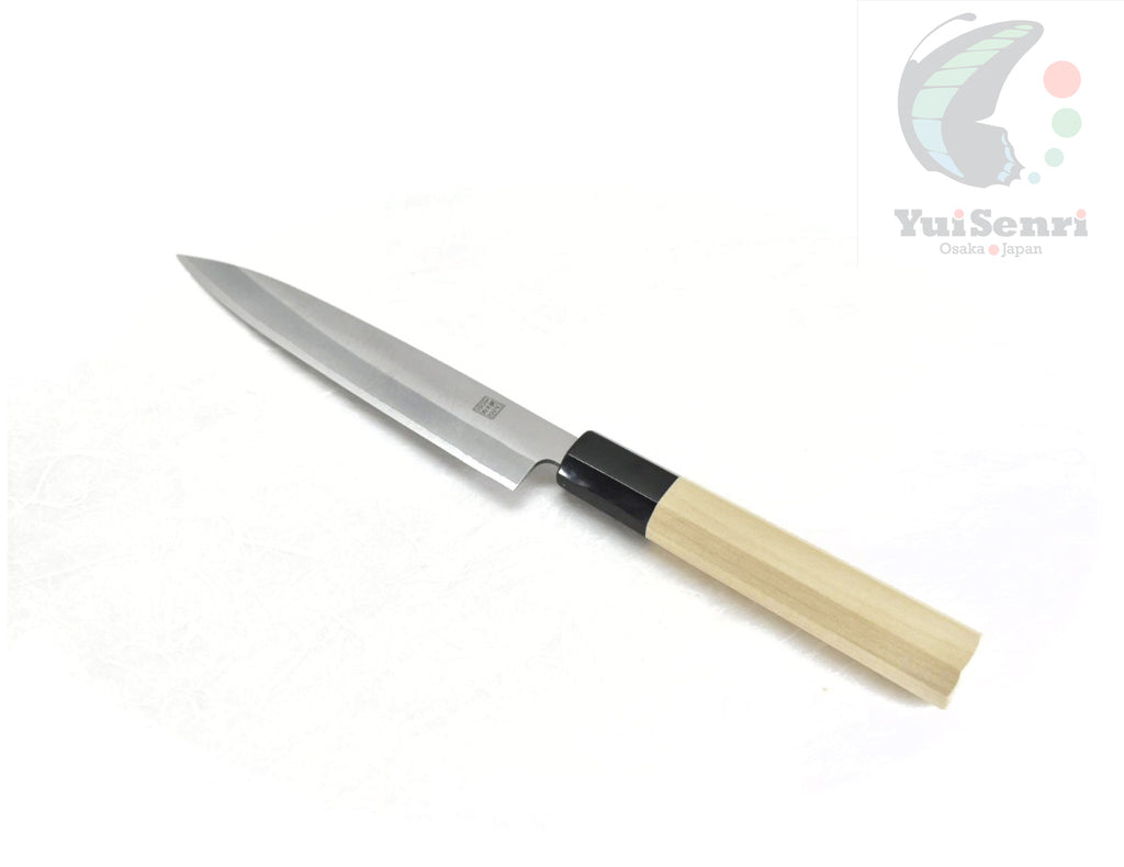 This is a Yoshihiro Paring/Petty Knife with professional Octagonal Magnolia Handle,  made of HAP40 at the core of the blade, squeezed into Stainless Steel(known as Clad "Warikomi method").