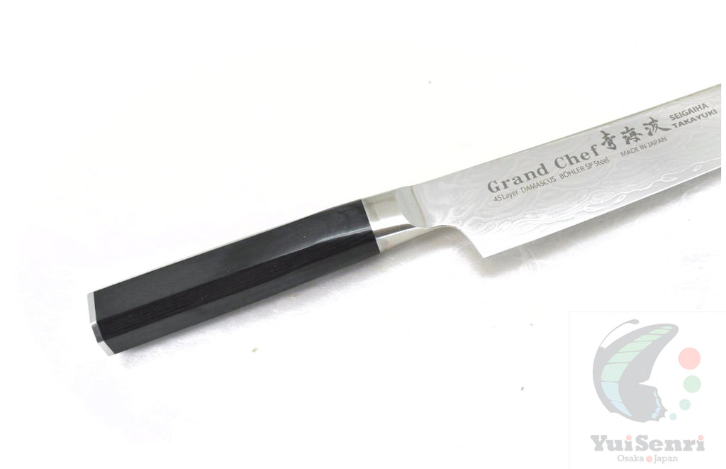 Sakai Takayuki GRAND CHEF SEIGAIHA 45 Layers Damascus BOHLER SP Steel Sujihiki 240 mm