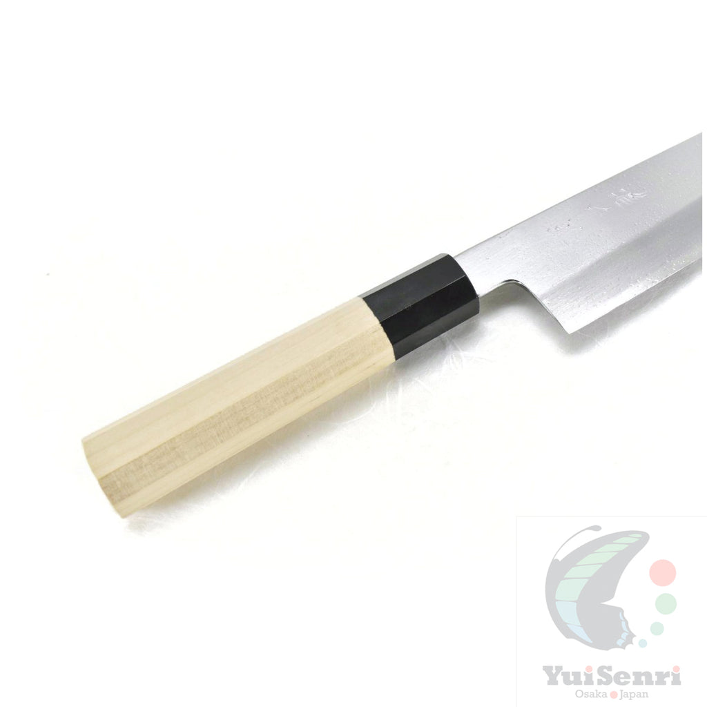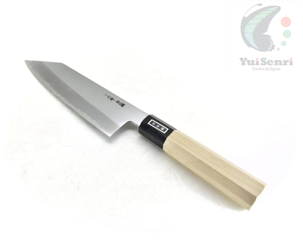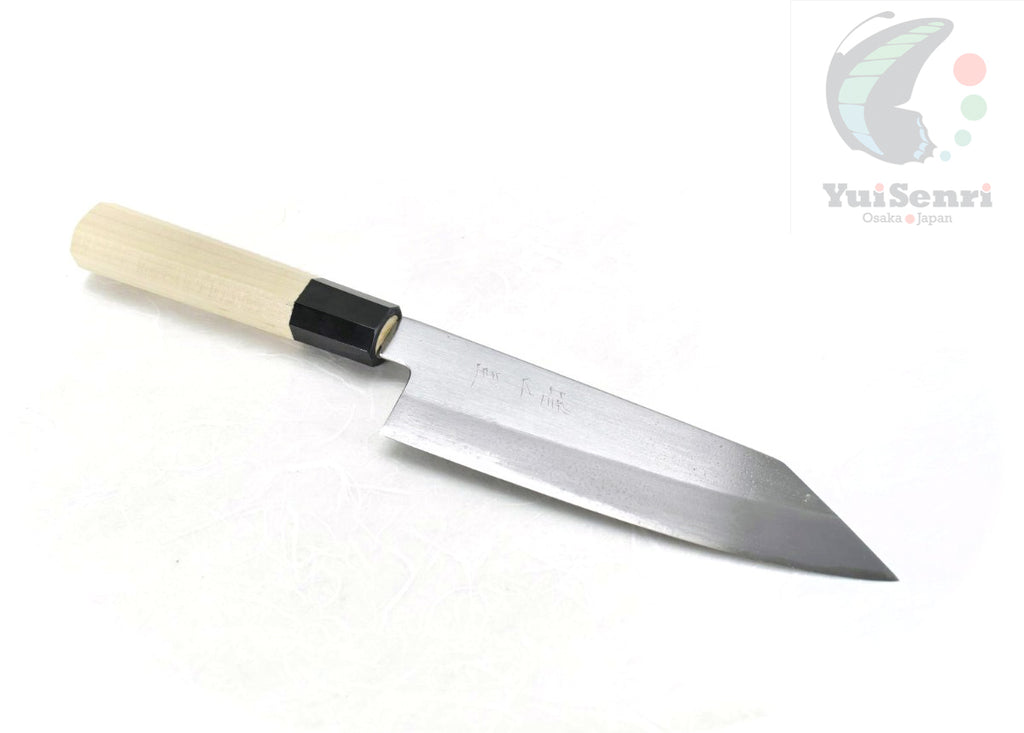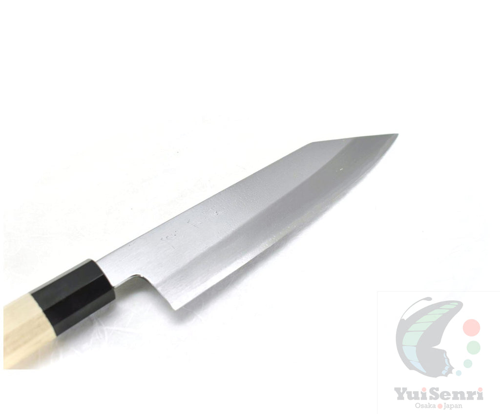 SThis is a YuiSenri Original Professional Kengata Santoku (also known as Bunka), made of Yasuki White Steel #2 with Professional Octagonal Magnolia Handle & Buffalo Horn Bolster.