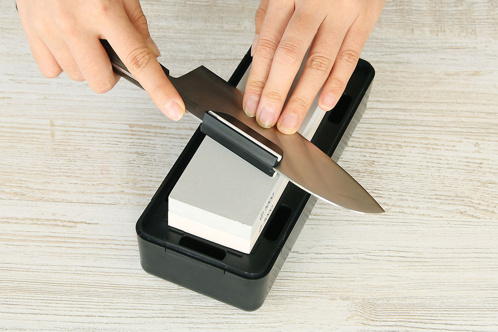 ALL IN ONE type to start sharpening your knife including Combination Stone(#1000 & #3000), Non Slip Case/Base & Sharpening Guide Clip for Beginners.