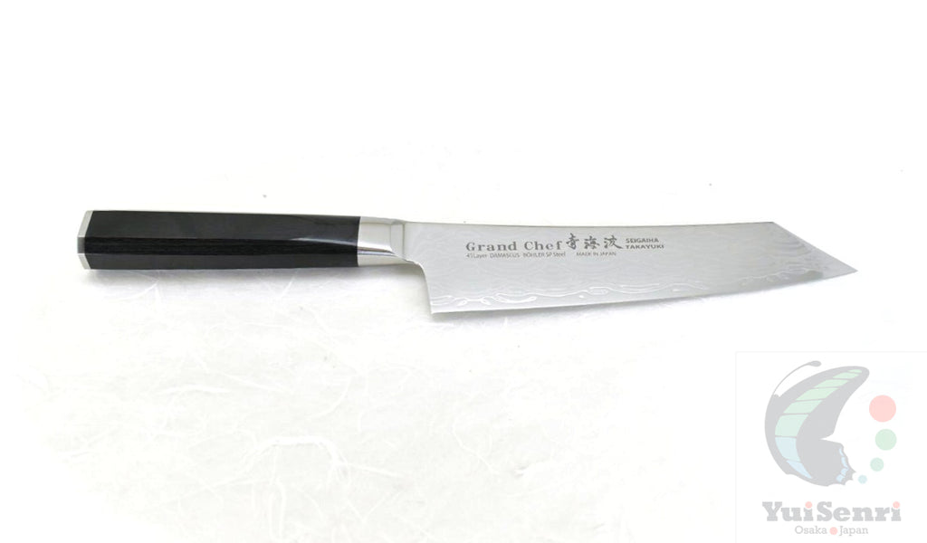 Sakai Takayuki GRAND CHEF SEIGAIHA 45 Layers Damascus BOHLER SP Steel Kengata Santoku 160 mm